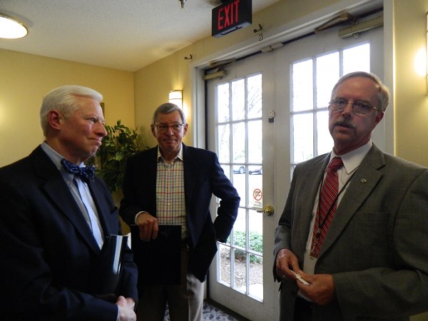 Pictured from left are Melvin Kallio’s sons Craig and Tom Kallio, and Jules Doux, military veterans affair case worker for U.S. Representative Chuck Fleischmann.