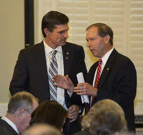 U.S. Sen. Lamar Alexander of Tennessee addresses a gathering of park supporters and the news media at the South Interior Building in downtown Washington, D.C., on November 10, 2015, where Secretary of the Interior Sally Jewell and Energy Secretary Ernest Moniz signed a memorandum of agreement which created the 409th park in the National Park System, the Manhattan Project National Historical Park. The park was authorized by Congress in December 2014. It will have three sites in Hanford, Washington; Oak Ridge, Tennessee; and Los Alamos, New Mexico. (NPS Photo by Anthony DeYoung)