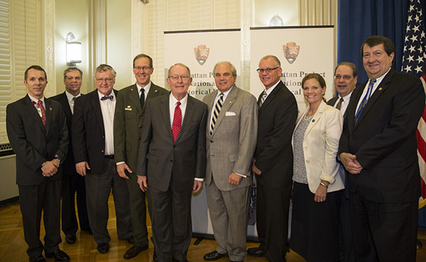 Members of the East Tennessee delegation with U.S. Senator Lamar Alexander at the South Interior Building in Washington, D.C., on November 10, 2015, where Secretary of the Interior Sally Jewell and Energy Secretary Ernest Moniz, signed a memorandum of agreement and created the 409th park in the National Park System, the Manhattan Project National Historical Park. The park was authorized by Congress in December 2014. The park will have three sites in Los Alamos, New Mexico; Hanford, Washington; and Oak Ridge, Tennessee. (NPS Photo by Anthony DeYoung)