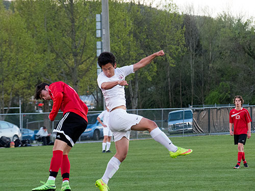Oak Ridge junior forward Austin Vineyard (9) scored the last goal for the Wildcats in a 3-1 win over Halls at home on Thursday, April 7, 2016. (Photo by John Huotari/Oak Ridge Today)