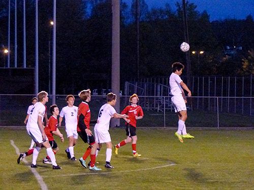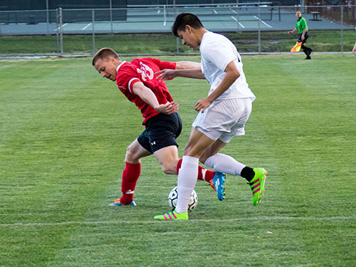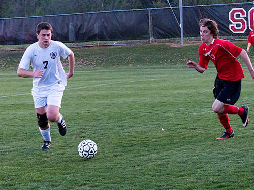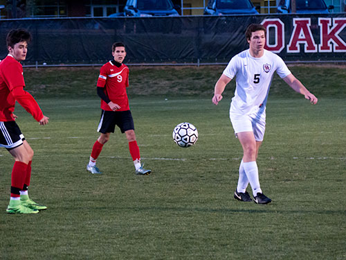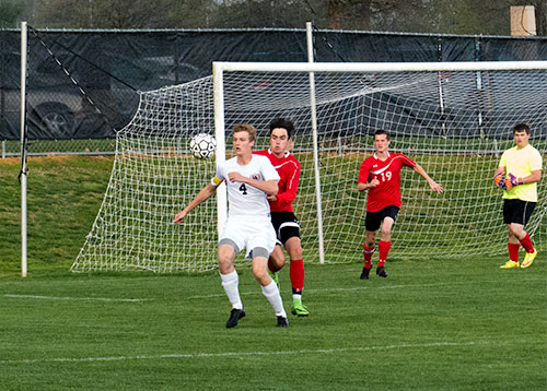 Pictured above are Oak Ridge senior Matt Warmbrod (5) and Halls junior goalkeeper Tyler Anthony. (Photo by John Huotari/Oak Ridge Today)