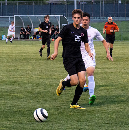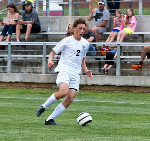 Oak Ridge junior defender Stefan Mortl (2) dribbles against Clinton during a 3-0 win for the Wildcats at home on Friday, April 29, 2016. (Photo by John Huotari/Oak Ridge Today)