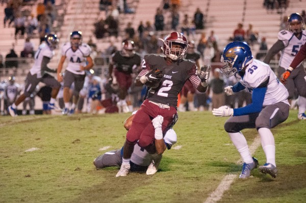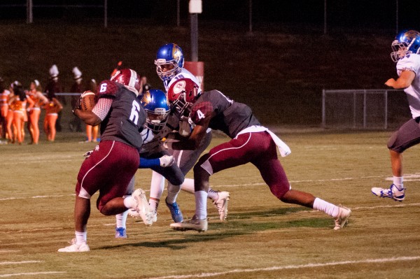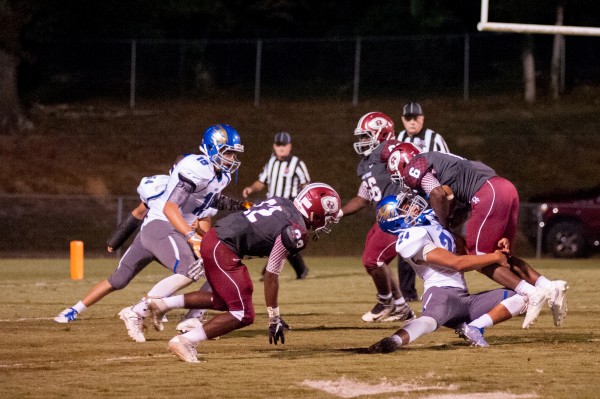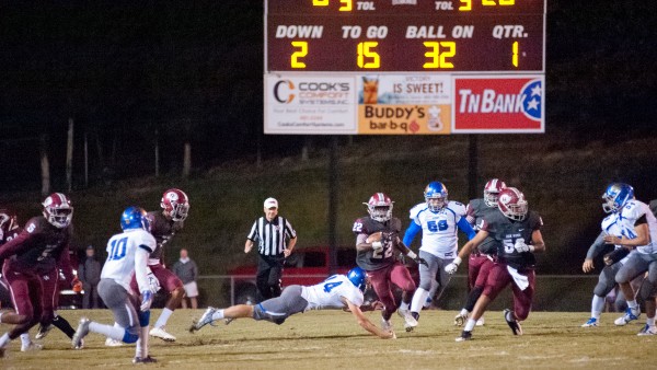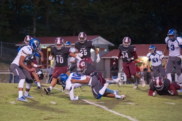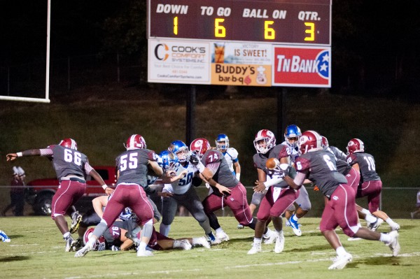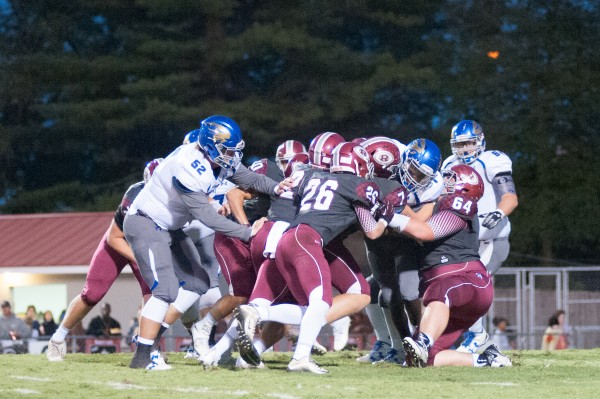 The Oak Ridge defense makes a stop during a 56-6 win over Karns on Senior Night on Blankenship Field on Friday, Sept. 30, 2016. (Photo by Julio Culiat)