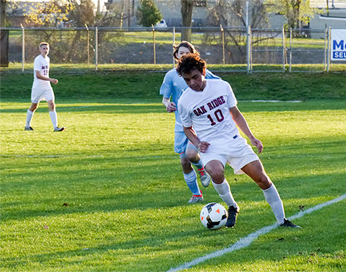 Matthew Malagon (10) of Oak Ridge keeps the ball inbounds during a 5-0 win over Gibbs at the Oak Ridge Soccer Complex on Tuesday, April 4, 2017. (Photo by John Huotari/Oak Ridge Today)