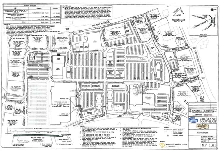 Pictured above is the current PUD master plan for Main Street Oak Ridge, which was approved in 2015 when Crosland Southeast was the developer.
