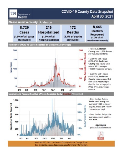 Filed Under: COVID-19, Front Page News, Health, Health, Slider Tagged With: Anderson County, COVID-19, COVID-19 cases, Tennessee Department of Health