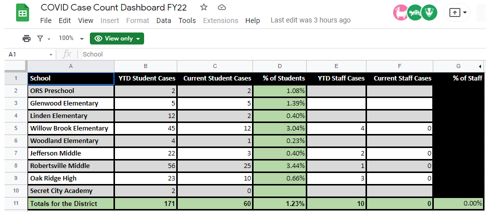 Oak Ridge High School has now had 23 student cases, with 10 of those current, and three staff cases.