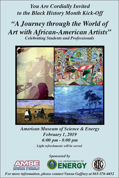 The Oak Ridge Chapter of Blacks in Government (BIG), the American Museum of Science and Energy (AMSE), and the U.S. Department of Energy are sponsoring an evening with African-American artists on Friday, February 1, from 6 to 8 p.m., a press release said.